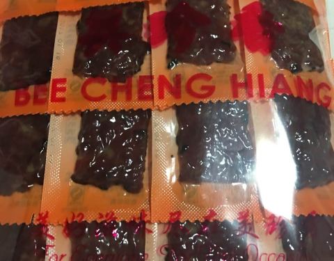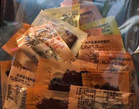美珍香的猪肉脯还是很赞的,就是价格不便宜,最好吃的是现烤的,肉香满溢的,肉片也是很实在的一大块。不过现烤就是保存时间短,所以还是买真空包的多,一般都是独立小包装的,一块正好解馋。口味有点偏甜,不过口感好,不是那种硬硬的口感。小包装携带也方便,是零食吃货必备小食。