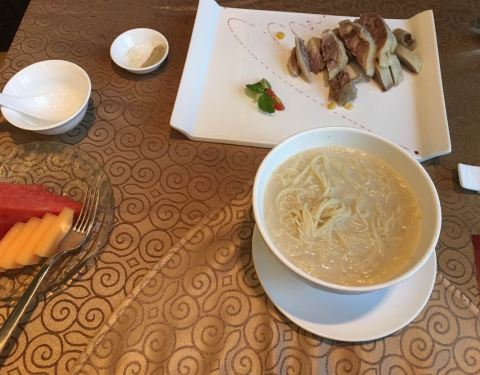 特意点了他家的红汤面,超级好吃,面条做的很劲道,汤调的很鲜,吃下去热乎乎的,特别的舒服。凉菜是莴苣,端上来嫩嫩绿绿的,特别养眼,吃起来清爽,很有食欲。