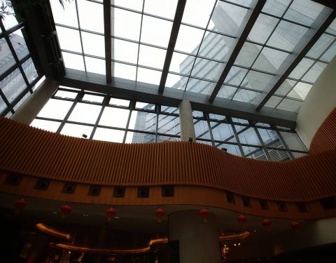 - 甜品居然看着就没有想吃的。 从头顶到地上的落地玻璃幕墙还是挺美的