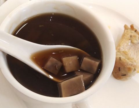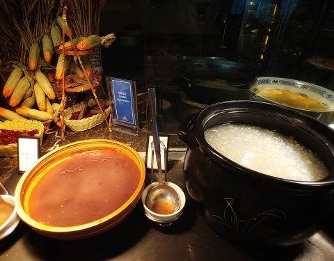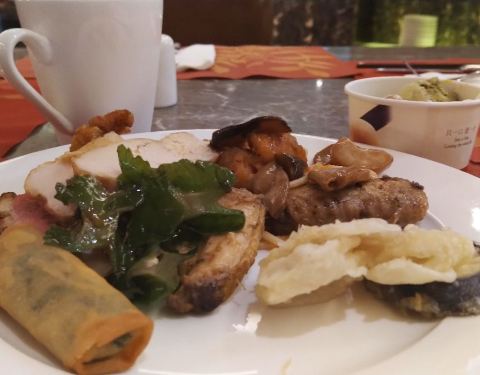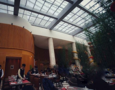 这家一直评价一般,凭着对希尔顿的热爱心里总有些不相信,现在觉得网友的眼睛还是雪亮的。 餐品种类少,看着也不太舒服,特色的鸭血粉丝汤味道也太一般简直会让外地友人产生误解。甜品居然看着就没有想吃的。 从头顶到地上的落地玻璃幕墙还是挺美的。