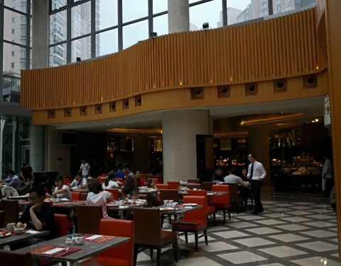 这家一直评价一般,凭着对希尔顿的热爱心里总有些不相信,现在觉得网友的眼睛还是雪亮的。 餐品种类少,看着也不太舒服,特色的鸭血粉丝汤味道也太一般简直会让外地友人产生误解。甜品居然看着就没有想吃的。 从...这家一直评价一般,凭着对希尔顿的热爱心里总有些不相信,现在觉得网友的眼睛还是雪亮的。 餐品种类少,看着也不太舒服,特色的鸭血粉丝汤味道也太一般简直会让外地友人产生误解。甜品居然看着就没有想吃的。 从头顶到地上的落地玻璃幕墙还是挺美的。