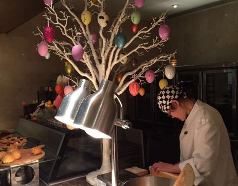 [ 环境 ] 在下关那边,位置有点偏,最好开车过去。但是餐厅环境很好,晚上还有歌手驻唱,是菲律宾的美女歌手吧。还是挺不错的。餐厅有宝宝活动区,超级大,是我见过所有酒店里最大的。有户外花园可以婚礼可以烧烤,风景不错,因为可以看到长江。 [ 菜品 ] 他家自助餐还算性价比比较高的。但品种再多一点会更好。不过价格也比较便宜啦。有海鲜区 冬天还有螃蟹 现在有龙虾。他家甜品我特别喜欢,这个要推荐!巧克力喷泉巧克力蛋糕都很醇厚。日料没怎么吃,定期会有美食节推出,不同的主题很好。烧烤不错。饮料都是那种小瓶装的可乐雪碧什么的。要自己开瓶。 [ 服务 ] 还可以吧。收盘子比较及时。