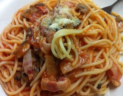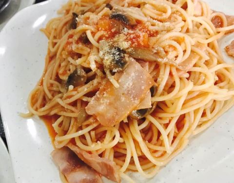 茄汁意面,女儿的最爱,分分钟光盘,还有最爱的红豆椰汁西米露棒棒的!