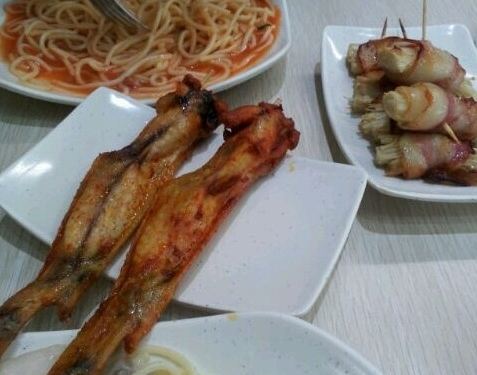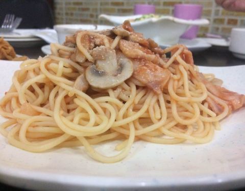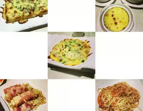 鸡蓉蘑菇汤味道不错,浓郁,比较喜欢,芝士土豆泥也挺好吃,芝士给的不少,土豆泥调味稍微淡些。烤鸡翅有些干、硬。意大利面的番茄酱应多加一点,味道才浓。芝士焗饭 满满的都是芝士,真的是会拉丝。推荐芝士土豆泥,满满的一碗,还满香的。