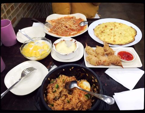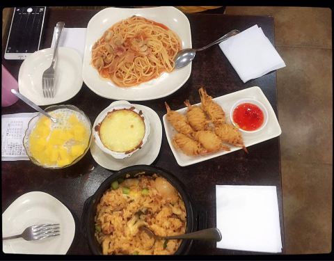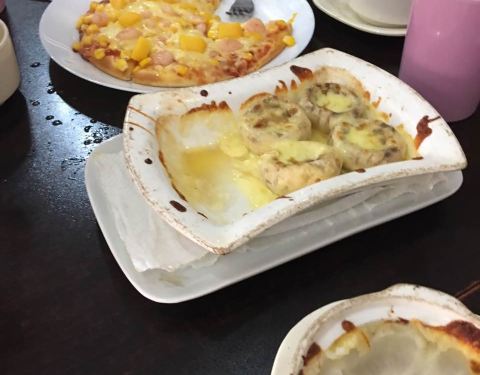 鸡蓉蘑菇汤味道不错,浓郁,比较喜欢,芝士土豆泥也挺好吃,芝士给的不少,土豆泥调味稍微淡些。烤鸡翅有些干、硬。意大利面的番茄酱应多加一点,味道才浓。芝士焗饭 满满的都是芝士,真的是会拉丝。推荐芝士土豆...鸡蓉蘑菇汤味道不错,浓郁,比较喜欢,芝士土豆泥也挺好吃,芝士给的不少,土豆泥调味稍微淡些。烤鸡翅有些干、硬。意大利面的番茄酱应多加一点,味道才浓。芝士焗饭 满满的都是芝士,真的是会拉丝。推荐芝士土豆泥,满满的一碗,还满香的。