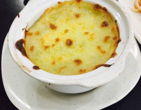 - 鸡蓉蘑菇汤味道不错,浓郁,比较喜欢,芝士土豆泥也挺好吃,芝士给的不少,土豆泥调味稍微淡些