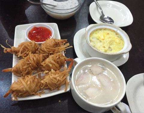 - 总体感觉还行,但是今天的蘑菇鸡蓉汤调料味好重。吃的想吐,芝士土豆泥做的也有点马虎。丝丝缕缕虾还可以
