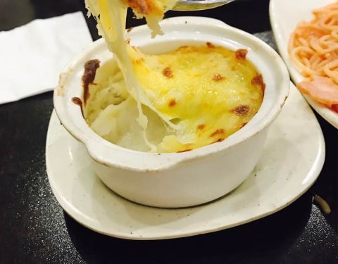 鸡蓉蘑菇汤味道不错,浓郁,比较喜欢,芝士土豆泥也挺好吃,芝士给的不少,土豆泥调味稍微淡些。烤鸡翅有些干、硬。意大利面的番茄酱应多加一点,味道才浓。芝士焗饭 满满的都是芝士,真的是会拉丝。推荐芝士土豆...