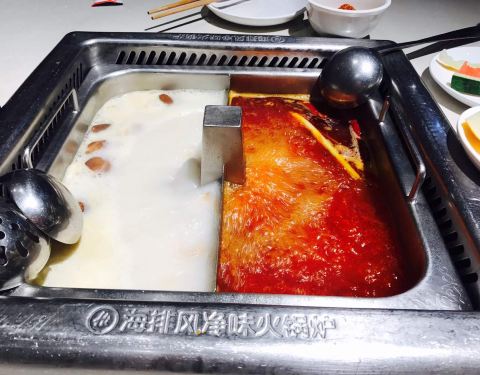 下载了海底捞的app,但没有定到座位,几乎各时间点都火爆。只好通过电话定位。订到了10:30,19:15到店,座位还未收拾好。等了一会儿,番茄锅+麻辣锅。一端上来就吃了,都没来得及拍照。最后要分捞面,番茄汤正浓...