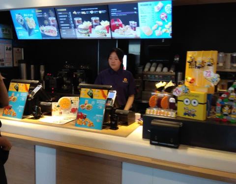 有点饿 正好身边就是麦当劳 就顺路买了份套餐 最近热推小黄人超喜欢 就点了个麦乐鸡套餐 可乐换成了海盐柠檬苏打 口味还不错 颜值也挺高 还挺推荐的 就是服务蛮 真的很让人不舒服 我看好套餐需要点餐的时候 我就看到收银的服务员一直再和他认识的人聊天 我说了三遍麦乐鸡套餐他才很不情愿的去帮我点单 那个服务员就是第一张图片中的男的 姓何