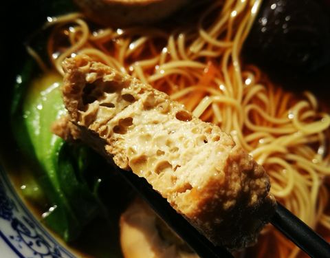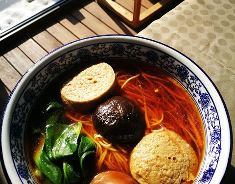 - 身处绿荫下,竹屋旁,几个好友围桌坐着,品一壶茶,此时一碗清爽的斋面,真的是非常棒