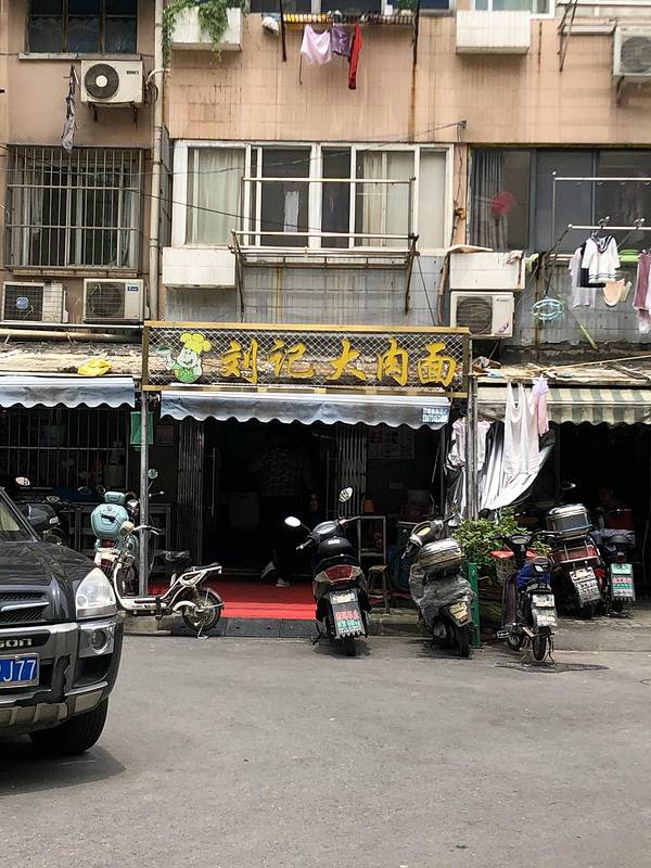 从玄武门出来,骑单车2公里,去吃南京最够分量的大肉面,刘记大肉面。隐藏在小区里面,没有百度地图真不好找。这份面一端上来,我就怂了。老板,来个打包盒。36元一碗。颜色看着重,但是,不咸,是南方人喜欢的咸甜口。这碗肉,我吃了3顿。早饭没吃,晚饭也省了。