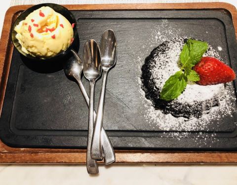 时隔半年,又来到亨利之家,这家老牌西餐厅,在南京开了足足有二十多年,比我的年龄还大。之前是美式阁楼风,现在重新装修了一番,更宽敞明亮了,旋转楼梯超棒。火焰和牛这款是招牌,肉质鲜嫩。大虾意面很赞,去壳虾很大只,意面被酱汁包裹着,芝士味浓郁。两款披萨我觉得榴莲披萨更为惊艳,榴莲果肉很大块,但是你闻不到它的臭味,厨师很有心机的用柠檬汁调了味,中和了两者的味道,所以这款披萨吃起来很是清爽。熔岩巧克力是我每次来必点,切开的那瞬间,里面的液体巧克力会迫不及待流了出来,也不会过甜过腻。
