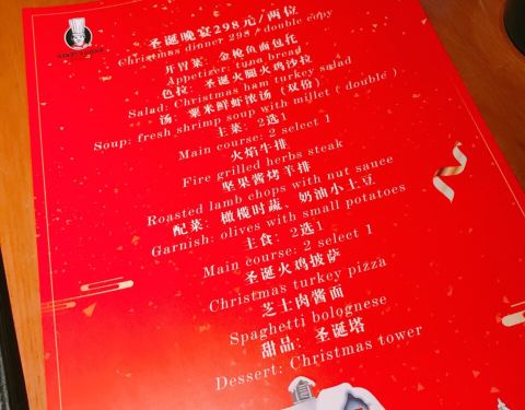 南京老牌西餐厅,在河西木瓜花的旁边,位于元通和奥体之间。提前定了位置预定的圣诞套餐,来这边过平安夜是明智的选择。圣诞套餐超级实惠,两个人吃得饱饱的。开胃菜是金枪鱼面包托,底下是吐司,上面是金枪鱼末加上番茄和蛋白,一口一个。汤选了两款,海鲜汤和牛尾汤,两款都很清淡,饭前喝热汤会很舒服。沙拉是圣诞火腿火鸡沙拉,火腿薄片都卷成了花的形状,整体口感满分。牛排选了两款,和牛和西冷,和牛这款肉质真的超棒,七分对于我来说刚刚好,这款的特点是有奶香味,肉的纹理清晰,很嫩,边上带一点点筋有一种不一样的口感,西冷这款牛排就没和牛出彩了,但是剩在肉排比较大,这款应该五分口感会更好些,牛排吃完真的是饱了。套餐里面甜品是圣诞塔,满满少女心,下面是面包托,上面是奶油和草莓堆积起的小山丘,还有坚果做点缀,挖开里面是各种水果丁,可以说口感是非常丰富了,旁边的圣诞老人是巧克力做的,也是可以吃的。我更爱熔岩巧克力蛋糕,它家的熔岩巧克力不甜也不腻,外面酥脆,里面爆浆,好吃。在亨利之家度过一个非常愉快的圣诞节,这里要为店长打call,本来预定的时候说套餐送两杯红酒,然后平安夜这天我扁桃体发炎,入座的时候店长看到我包里有药,贴心的问我们要不要把红酒换成水,因为吃药最好不要喝酒,真的超级贴心,这是我在其它西餐厅都没有感受到的温暖。