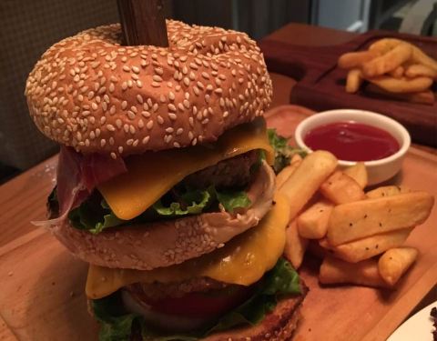 两人套餐量大价优,汉堡包里的牛肉饼、火腿片很赞!