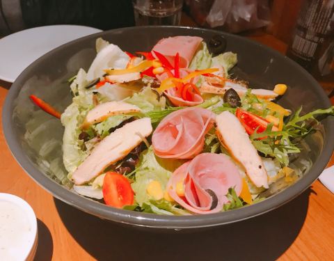 沙拉是圣诞火腿火鸡沙拉,火腿薄片都卷成了花的形状,整体口感满分。圣诞套餐超级实惠,两个人吃得饱饱的