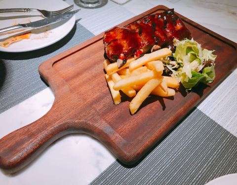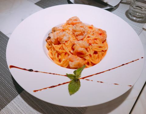 火焰和牛这款是招牌,肉质鲜嫩。大虾意面很赞,去壳虾很大只,意面被酱汁包裹着,芝士味浓郁