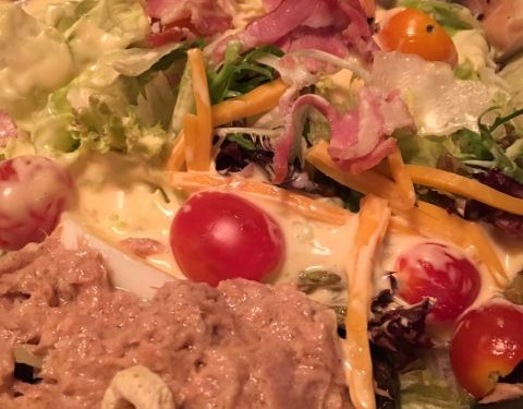 - 沙拉是圣诞火腿火鸡沙拉,火腿薄片都卷成了花的形状,整体口感满分。圣诞套餐超级实惠,两个人吃得饱饱的