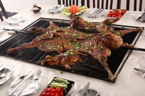 古朴雅境间享悠然之乐,烤全羊鲜嫩汁丰。