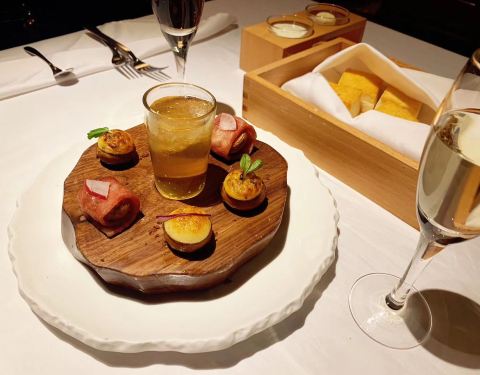 坐落于颐和公馆区,园区内均为精心修缮后的民国建筑,体现着南京深厚的历史文化底蕴,和风格独特的民国文艺情怀。Chef Mauro Colagreco来自法国,为我们奉上有时尚料理技术Sous Vide分子料理的低温慢煮菜品,以及加拿大龙虾、法国蜗牛、鱼子酱、松露等珍贵高级食材。最喜爱的蒜香蜗牛配黑蒜泥,口感紧实Q弹,与黑蒜的酸甜味搭配起来口感生动,而搭配欧芹海绵则能突显食材清甜鲜美的本味。