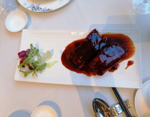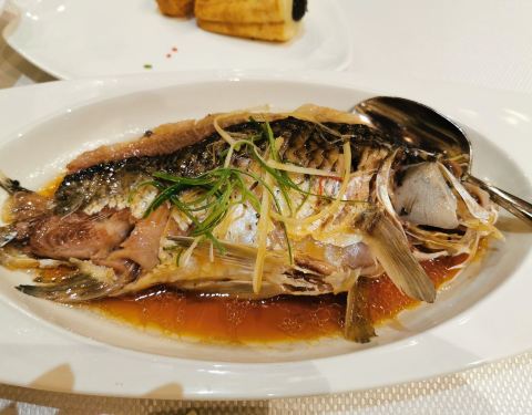 订酒店的时候,就看到很多点评说酒店的中餐厅超级好吃,于是一直非常期待。 但也再次验证了希望越大失望越大。 我以为是烹饪技术特别好,菜品特别精致,结果。。。 小笼、无锡排骨都和早餐自助餐厅里的一模一样。芦笋有些淡,不过也算无功无过。清蒸白鱼,中段这样一块要150元,谈不上调味有什么特别,就是鱼本身新鲜香嫩,所以口感很好。 唯一能称道一下的就是清炒蟹粉,食材非常充足,很多蟹黄蟹肉,味道也不错,就是吃多了会油腻。 总体来说性价比有些低,由于不饿特地点的少,结果也要人均250元,食材是值得肯定的,但是烹饪技术是完全没有的,家里都能做出来的味道。个人认为还是自助餐来得实惠。