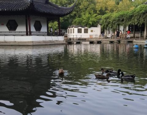 去的时候素食馆人不多,吃的还是那几样,味道还行吧。吃完素斋去放生池兜兜,看到了一群不同的牙鸭子。鸭子们是西园寺放生池的精灵,它们自在地游泳,不认生不怕人,热情奔放,给严肃的地方增添了亮色。