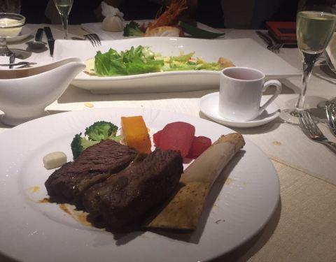环境高雅,餐前酒我觉得挺好喝的,续了很多杯,餐前面包无功无过,他家的牛排是煮出来的,略微有点老。以一个人加上服务费四百多的价位来说不便宜。
