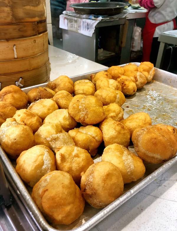 油氽团子最好趁热吃,松脆喷香的外层,松软柔绵的夹层,有小小一股汤