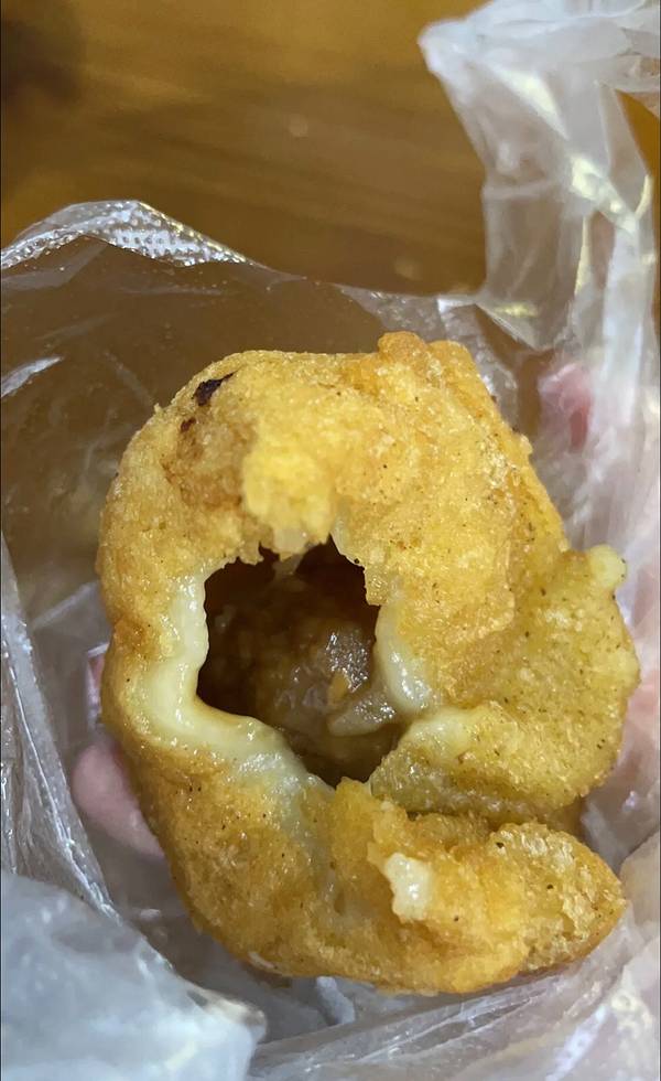 - 油氽团子最好趁热吃,松脆喷香的外层,松软柔绵的夹层,有小小一股汤