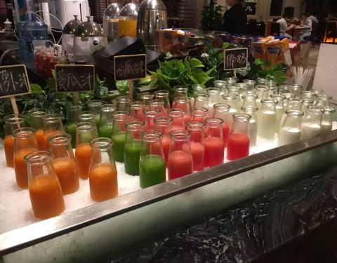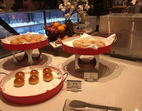 自助餐厅蛮不错的,在主楼一层,苏氏特色的美食都有,进门就是生煎包,蟹壳黄和豆腐花豆浆,而且都是现做的。苏州面前面的摊位生意最好。他们的焖肉也很赞,小小的,瘦肉多,咸菜肉丝也合口味!蔬菜沙拉,各类花式面包,果汁,粥,香肠,酸奶,寿司,烫蔬菜都有,而且食材新鲜!