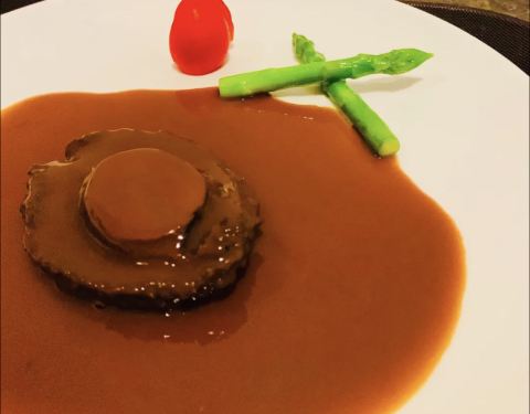 鲍鱼王子(中茵皇冠店),在中茵皇冠酒店这里,环境比较安静。鲍鱼的味道确实棒棒的,确实有劲道,有嚼劲,鲍鱼汁收的刚刚好;自制黑豆腐确实招牌,看着像臭豆腐,吃起来像日本豆腐。