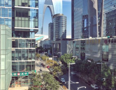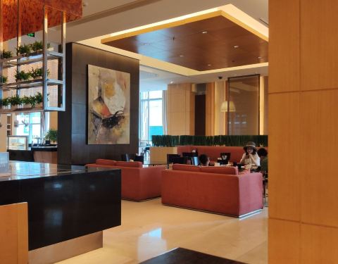 酒店在园区的中心位置 周围写字楼多 万怡酒店比较抢眼。大堂在四层 很洁净,气派 还有个机器人很可爱,就是木有体验到 小遗憾