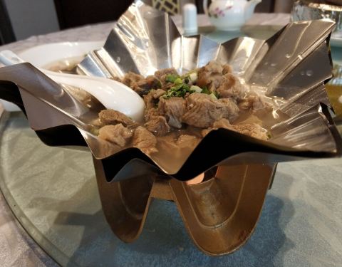 穹窿山孙武书院,过节期间可能人手问题不开大厅了。泉水牛肉虽清淡但肉嫩味美,盐水太湖河虾新鲜,咸度正好,炒蛋应该是草鸡蛋,餐前先来个罗浮饼,趁热吃。锅巴菜饭,是外面一个大锅巴,还以为是菜饭特地烧出锅巴。周边环境不错,天气好的话,吃完饭可以逛一逛。