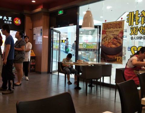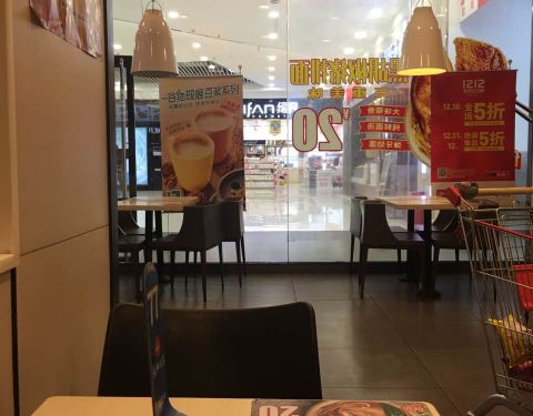 在一楼的饭店,快餐性质。旅游不建议。逛超市饿了来还行。干净卫生,上菜很快。豆浆很好喝,也有饭和菜,味道一般,大锅饭的感觉