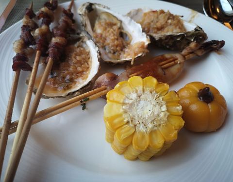 五星酒店的咖啡厅,一般情况下也是吃自助早餐和自助晚餐的地方,所以都会装饰的很大气,空间大,景色好,金鸡湖大酒店的金咖啡厅也是这样。这次从小年夜到初二住了四个晚上,每天早餐就是在这里吃的,六点半就开门了,可能过年人少些,我们七点半去人还不多。进门直接拿房卡在POS机上扫一下自动识别房号,靠窗的位子景观好,但是排列稍挤,进出不便,尝试坐了一次之后就果断换到靠近小馄饨摊位的桌子,不过晚餐不能坐这类位子,油烟大了些,还是靠窗位好。早餐选择品种异常多,中西式、面点、点心品种齐全,吃下来肉包子做的不错,煎饼果子刚出炉也很可口,咖啡最好自己去倒,咖啡机上可选的品类比较齐全。虽说是过年,但服务生配备齐全,没有人手不足的感觉