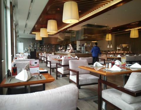 五星酒店的咖啡厅,一般情况下也是吃自助早餐和自助晚餐的地方,所以都会装饰的很大气,空间大,景色好,金鸡湖大酒店的金咖啡厅也是这样。这次从小年夜到初二住了四个晚上,每天早餐就是在这里吃的,六点半就开...五星酒店的咖啡厅,一般情况下也是吃自助早餐和自助晚餐的地方,所以都会装饰的很大气,空间大,景色好,金鸡湖大酒店的金咖啡厅也是这样。这次从小年夜到初二住了四个晚上,每天早餐就是在这里吃的,六点半就开门了,可能过年人少些,我们七点半去人还不多。进门直接拿房卡在POS机上扫一下自动识别房号,靠窗的位子景观好,但是排列稍挤,进出不便,尝试坐了一次之后就果断换到靠近小馄饨摊位的桌子,不过晚餐不能坐这类位子,油烟大了些,还是靠窗位好。早餐选择品种异常多,中西式、面点、点心品种齐全,吃下来肉包子做的不错,煎饼果子刚出炉也很可口,咖啡最好自己去倒,咖啡机上可选的品类比较齐全。虽说是过年,但服务生配备齐全,没有人手不足的感觉 2018-01-13 06:36来自携程 网友