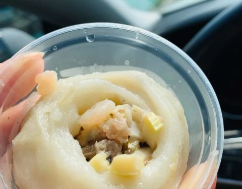 原来卖包子的窗口现在直接搬到了旧学前那里了,炒肉馅团子,做好的团子有专门的小碗一个个单独放,到也别致。买了尝尝,感觉不错。