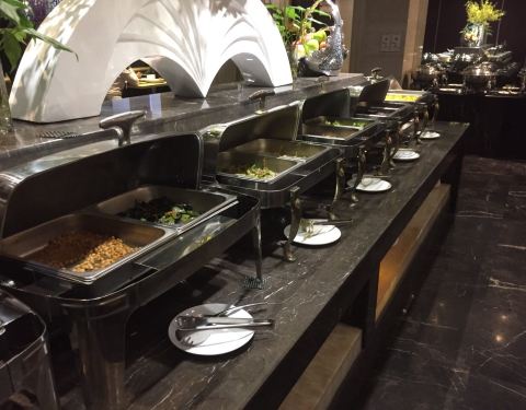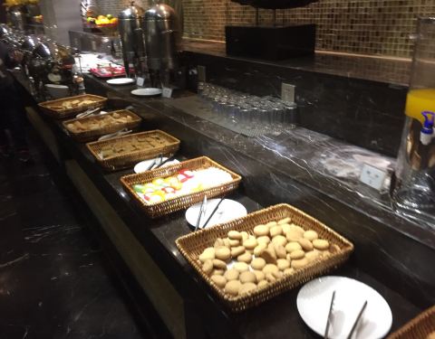 吃了他们的早餐自助餐,没有特别,到的时候还有一段时间才完,但很多盘子都是所剩无几,东西也没有及时补上,留着的都是凉的,见到了也引不起食欲。