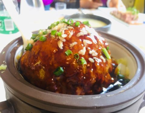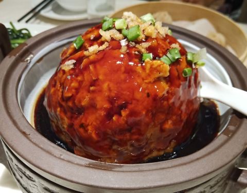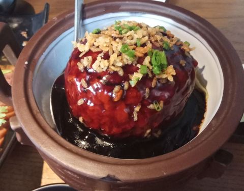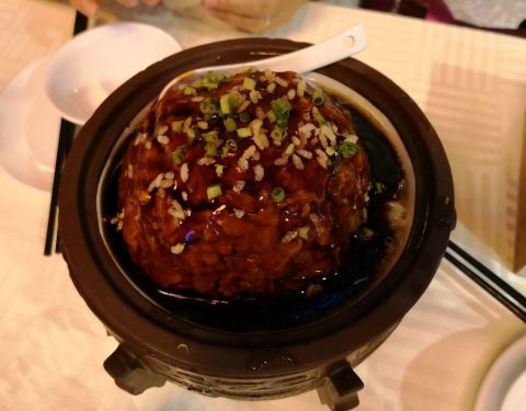 - 红烧狮子头98元很大一个,中间有个蛋黄,好吃但是容易腻。看着菜品基本上差不多,就选择了就近的这家
