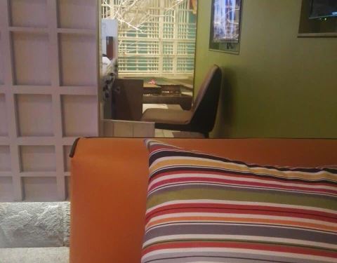 色调清新的粤菜餐厅,艺术墙夺人眼球。