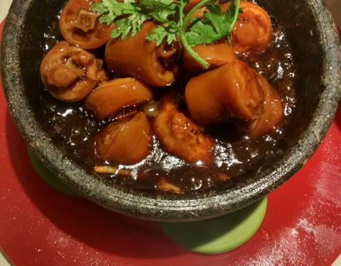 这是一家主做粤菜的餐厅,外观装修很别致,比较引人注意,里面环境也不错,相对比较安静。餐厅菜品和点心继承了粤菜一贯的特色——精致。红焖猪尾软糯入味,甜度刚好;招牌乳鸽脆脆、嫩嫩的,性价比很高。