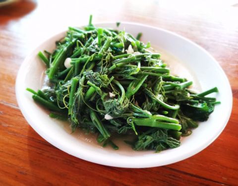 这家丰溢茶楼位于九溪,边上就有很大的一片溪水,很多家长带着孩子在玩水。他家这地理条件算好,周末中午吃饭的人爆满。 |白切鸡^白切鸡上了榜单。做的确实不错。鸡很鲜嫩,蘸点酱油就非常好吃。 |南瓜藤^蒜泥...