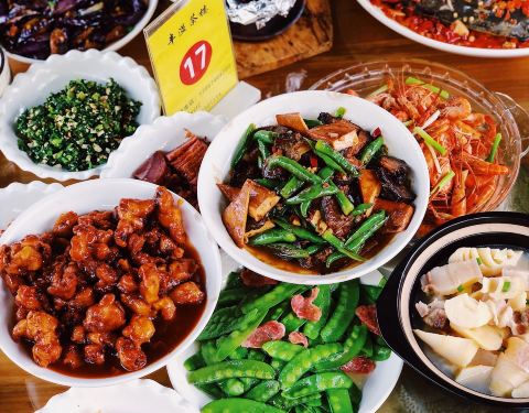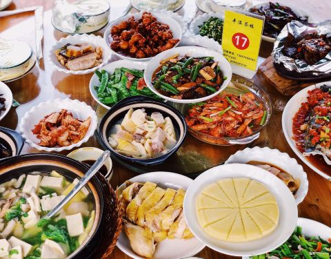 - 迅雷不及掩耳之势就摆满一桌,小伙伴们还在沉迷打牌欲罢不能,服务员就已经三催四请,督促我们赶紧上桌吃饭