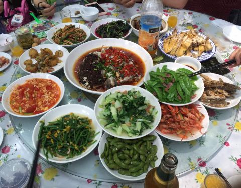 迅雷不及掩耳之势就摆满一桌,小伙伴们还在沉迷打牌欲罢不能,服务员就已经三催四请,督促我们赶紧上桌吃饭