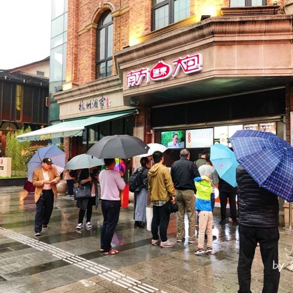 雨天也排了大概一刻钟...深秋钱塘行,在附近喝咖啡,于是过来买南方大包。这家是杭州包子老店,还一度成为网红,据说那时排队一小时起。