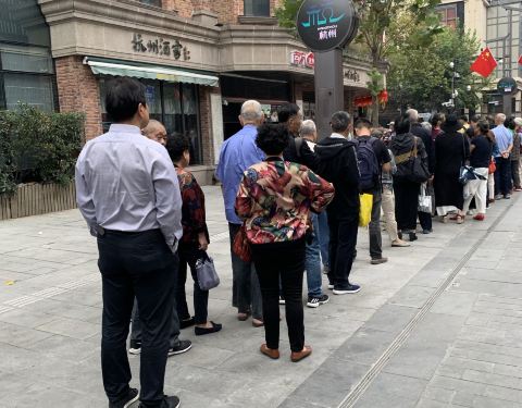 深秋钱塘行,在附近喝咖啡,于是过来买南方大包。这家是杭州包子老店,还一度成为网红,据说那时排队一小时起。