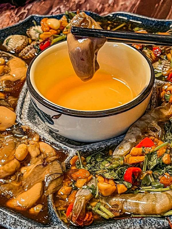 厦门居然也有这么正的潮汕生腌‼️ 老板娘是汕头人 难怪做的这么正宗又好吃呜呜呜🥹家人们都给我来吃‼️ ✔️绿豆爽 绿豆去皮手工做的 超级清爽解腻了‼️ ✔️生腌拼盘 点了生腌虾➕血蛤➕海蛎 秘制酱汁 鲜辣爽口 超新鲜的海鲜腌制得超入味 生腌虾冰凉甜糯 我滴最爱呜呜呜 ✔️还单独点了一份生腌蟹??️ 口感像在吃冰激凌 入口即化 太爱了 ✔️牛肉炒粿条 这个粿条真的好好吃啊😋咸甜口的 非常Q糯 酱汁浓稠裹满粿条 绝绝子啊 ✔️潮汕牛肉火锅 这都不用夸了 正宗得不要不要的
