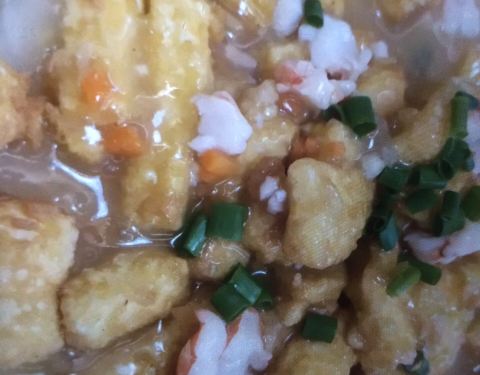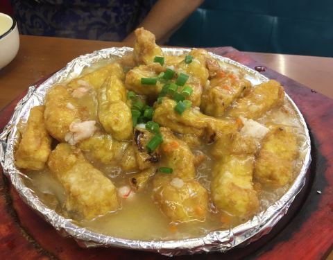 装修没啥大作为的鑫鸿达,走的是招牌菜和服务路线吧,来过几次,老板娘服务都一如既往,热情有度。 对他们的煎蟹味道加以肯定,浓浓的姜香,蟹香肉鲜,是古早的味道。 招牌食神蛋豆腐:这次真有食神的味道了,上次觉得一般提了意见,大有进步呐。豆腐外衣娇脆,淋上的鲜虾汤汁,香甜可口。 杂鱼酱油水,除了份量比较少,鱼很清甜。 芒果汁确定是鲜榨,不是粉调,兑了些水。