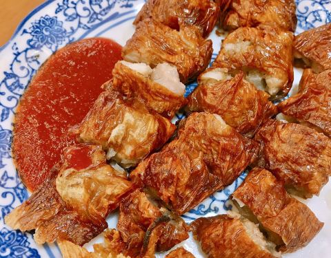 - 另一道给我惊喜的菜,其实我本身不太喜欢五香条,但这家真的好吃,外皮酥脆,肉是嫩的里脊肉,QQ的带点筋实用