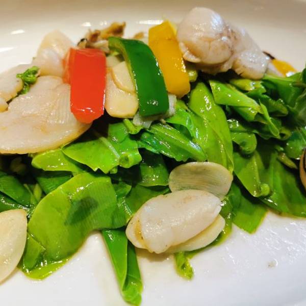 从小上下学到长大上下班经过了无数次却不知道隐藏在其中的黑珍珠٩( ö̆ ) و 【凉菜】 |原味绿笋^就一个感觉,笋很嫩! |白切雪花牛肉^牛肉很有筋道又不会说咬不动,带着筋,搭配特制的蘸酱很好吃 【热菜】 |斑节虾蔬菜沙拉^胡麻酱的沙拉永远是我的最爱!点睛之笔是竟然带有点芥末酱!最近的我狂爱芥末!斑节虾也很贴心的都剥好了~还有各种蔬菜水果 |藤椒鲨鱼^看起来火辣辣的其实不会很辣,藤椒的麻味比较重!鱼肉很嫩很香~ |苦瓜三层肉煲^第一次吃这种做法的苦瓜,和三层肉一起煲,苦瓜软烂软烂的,不是那种讨厌的苦,不喜欢吃苦瓜的我觉得都会爱上~ |猪脚焖大连鲍^鲍鱼和猪脚的结合,这道菜适合加一碗白米饭,非常下饭!鲍鱼的纹路处理得有点美丽 |蛋饺煮丝瓜煲^很适合夏天的一道菜了~汤汁都可以直接喝的那种,咸甜咸甜的 还有一些蔬菜类的看着就很清新很有食欲,整体菜色都很适合夏天! |猪油捞饭^小小一个可可爱爱,比起炒饭更加深得我心!米饭颗粒分明,又有猪油的香气,吃完一碗不是问题! 【饭后甜点】 最爱的莫属饭后甜点了~烧仙草是赠送的,有仙草冻 西瓜 小颗的芋圆 加上酸酸的火龙果整体不会太甜!很清爽~养颜桃胶加决明子也是不太甜,超喜欢!